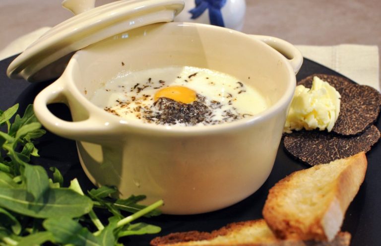 - Servir l’œuf sur la crème chaude et râper la truffe au moment du service.