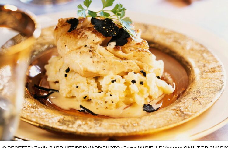 - Ajouter la truffe fraîchement râpée et un peu d’eau de cuisson si nécessaire.